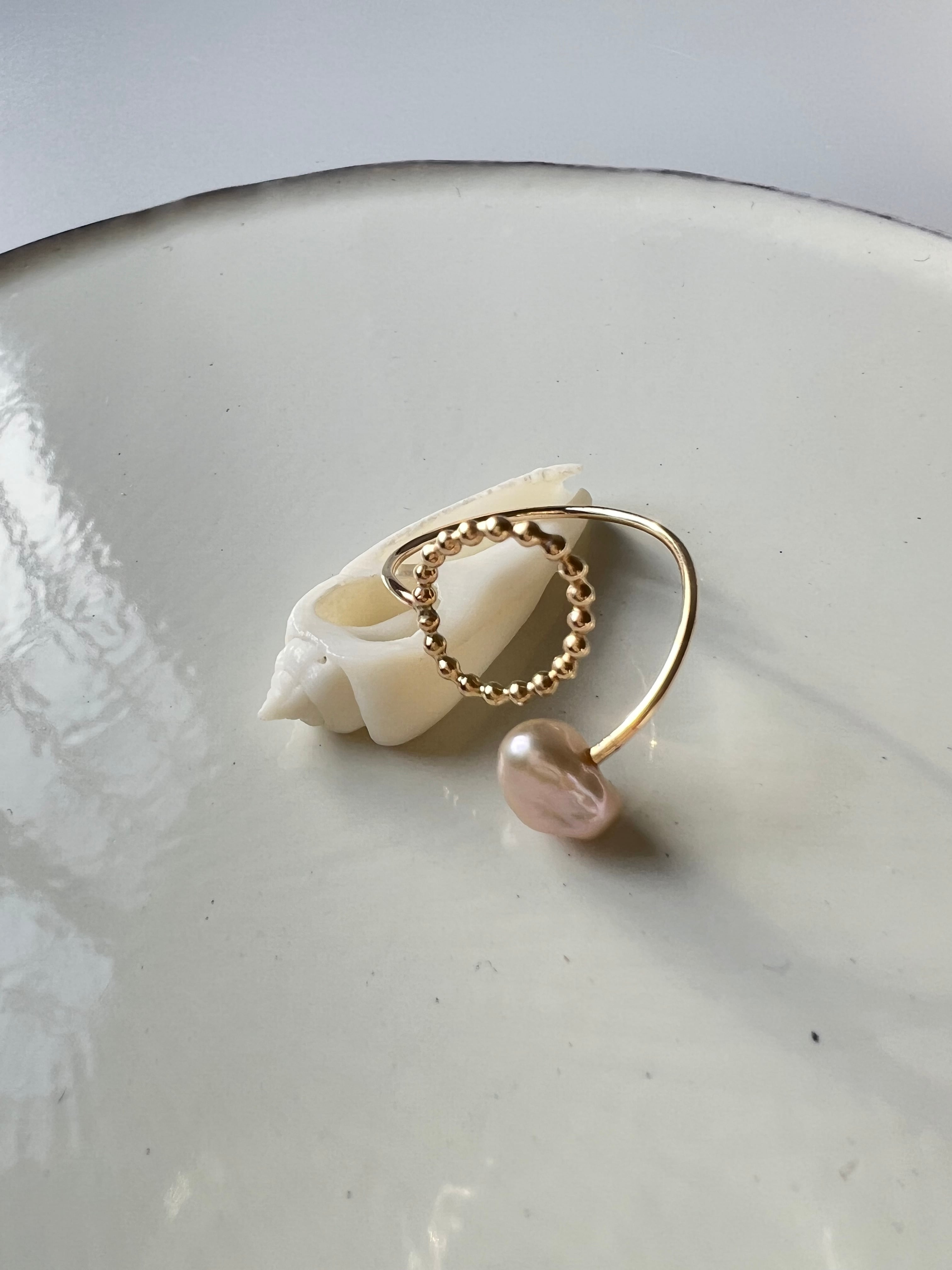 #新月の指輪 #14kgfリング #フリーサイズリング #プレゼント #アクセサリー#琵琶湖パール