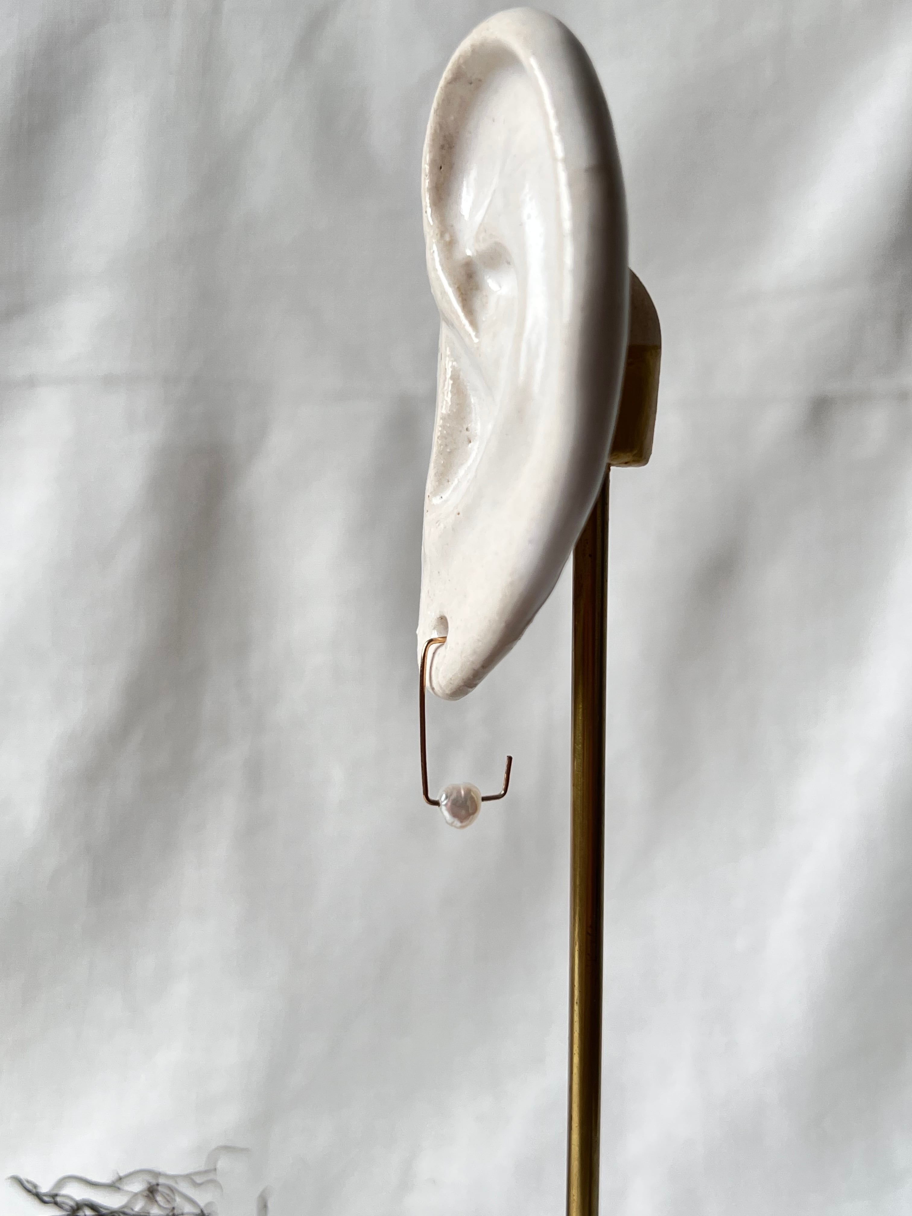 とてもシンプルなピアスですが、金色のワイヤーが個性的なデザインにしています